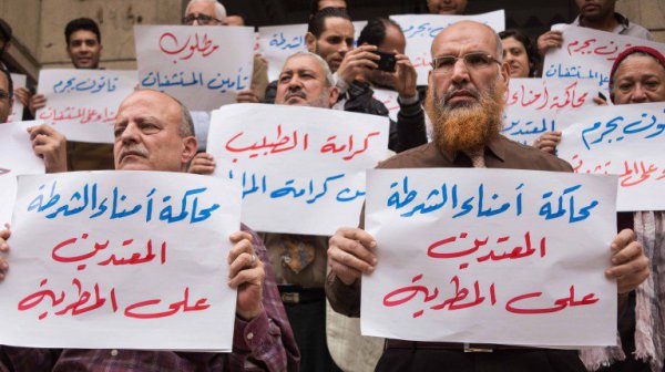Cuma günü Suez Merkez Hastanesi’nde bir doktor, vardiya bitiminde hastaneden çıkarken, hasta bir çocuğun ailesi tarafından darp edilerek kemikleri kırıldı. Bu olayı doktorlara karşı gerçekleştirilen başka bir saldırı takip etti. El Matariya devlet hastanesinde iki doktor polis memurları tarafından saldırıya uğradı. Saldırıdan sonra polis memurları serbest kaldı ve haklarında soruşturma bile açılmadı.