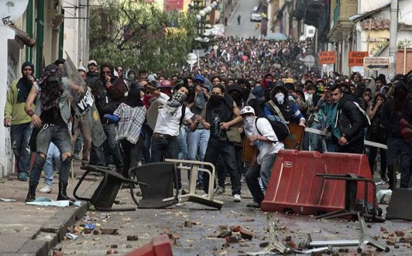 Ülke çapında gerçekleşen grev gününde 15 bin kişinin Bolivar Meydanına yürüdüğü başkent Bogota’da polis ile göstericiler arasında çatışma çıktı. Polis eylemcilere tazyikli su ve boya mermileriyle saldırırken eylemciler de polise taş atarak karşılık verdi.