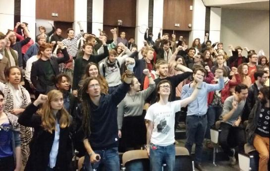 Paris Siyasi Bilimler Akademisinde 200 kadar öğrenci 21 Mart Pazartesi günü yeni çalışma yasasını protesto etmek amacıyla amfiyi işgal etti.[1]