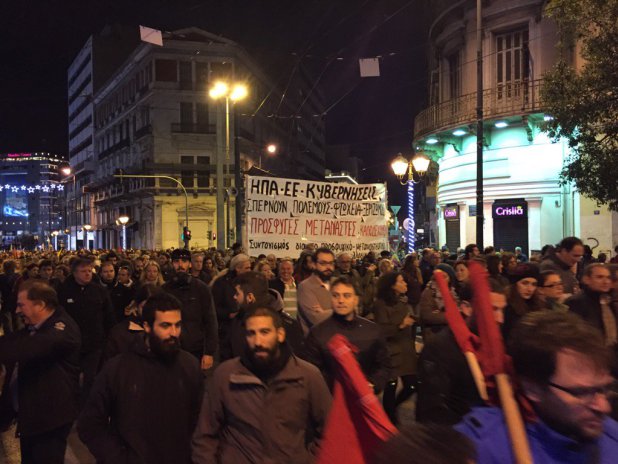 Yunan hükümeti Obama ziyaretini arabulucu bir ziyaret olarak sunmaya çalışırken, binlerce eylemci Ortadoğu, Afganistan, Suriye ve Latin Amerika gibi pek çok bölgede süregiden ABD politikalarını protesto etmek için sokağa çıktı. Protestocular ABD’yi “radikal islamı” ve onun “bilindik sonuçlarını” desteklemekle ve Troyka tarafından dayatılan kemer sıkma politikalarına yardımcı olmakla suçluyorlar.