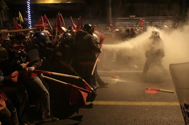 ABD Başkanı Barack Obama’nın Atina ziyaretini protesto eden ve Amerikan büyükelçiliğine yürüyüş yapmak isteyen eylemcilere polis gaz bombalarıyla saldırdı.