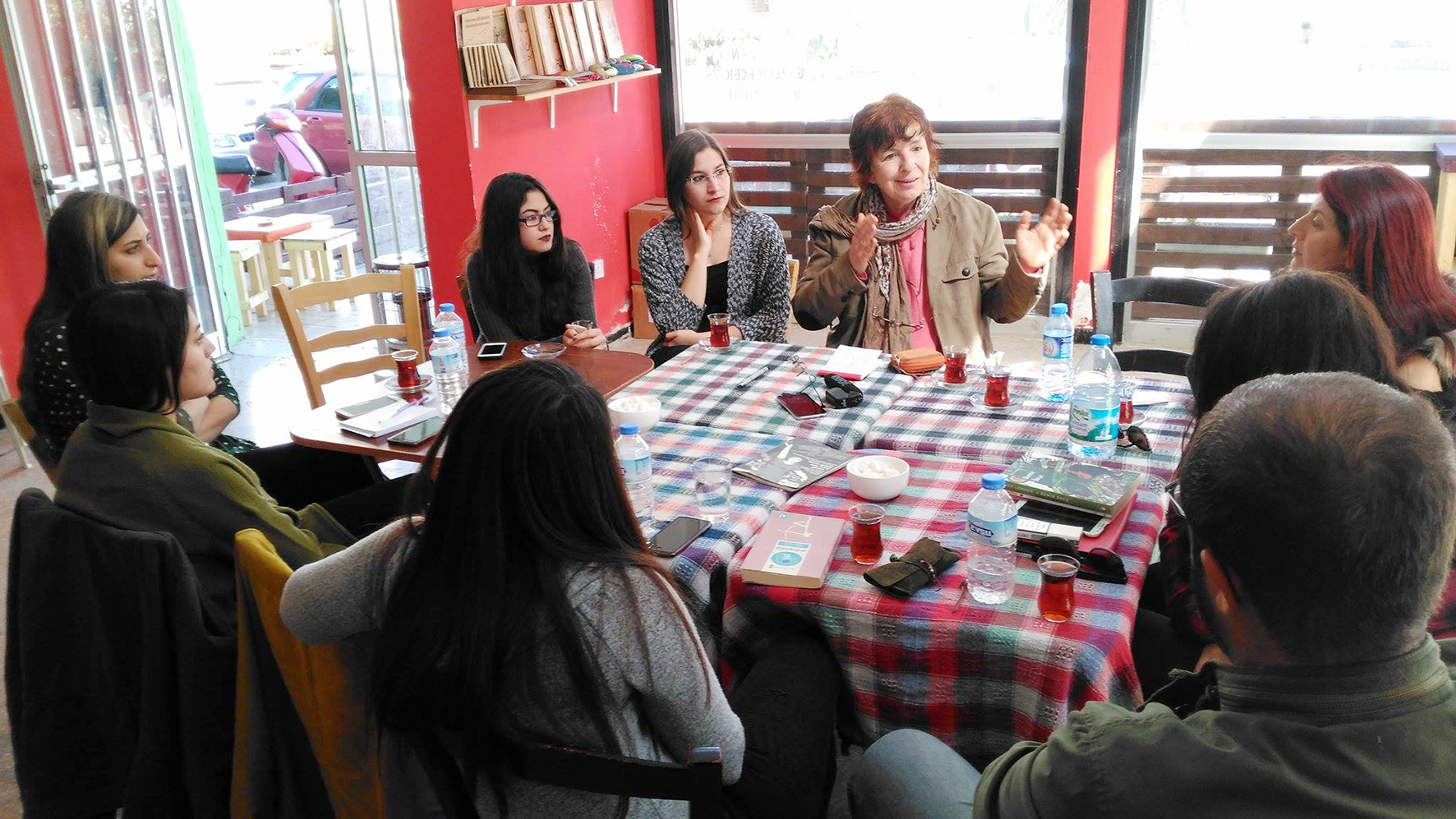 ÜMKK 5 Mart Pazar günü de kadın mücadelesi üzerine Sibel Özbudun’un katılımı ile gün boyu devam eden ilk atölye çalışmasını gerçekleştirdi. Üretim Merkezi’ne bağlı olarak çalıştırılan Koyu Kırmızı Kitap Cafe’de gerçekleştirilen atölye çalışmalarında katılımcılar daha detaylı ve interaktif bir şekilde tarihten günümüze kadınların toplum içerisindeki konumları, karşılaştıkları sorunlar ve bunlara karşı geliştirdikleri mücadeleleri ele alındı.