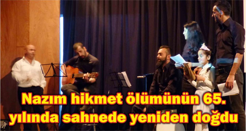 Nazım Hikmet Ran.. 12 yılı aşkın tutsaklık ve 13 yıllık sürgün hayatı.. Ulus sınırlarını aşan sanatı ve onun hayatını bütünüyle çepe çevre saran, sosyalist devrim mücadelesiyle bezenen politik düşünceleri.. Dünyaca ünlü şair Nazım Hikmet, ölümünün 65. yılında “Tiyatro Üretim” tarafından sahnelenen “Nazım İçin” adlı müzikal tiyatro oyunuyla, Lefkoşa Atatürk Kültür Merkezi (AKM)’de sevenleriyle buluştu.