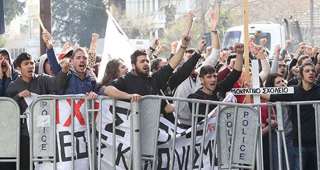 Güney Kıbrıs’ta öğrencilerin örgütlü bulunduğu POFEN ve PSEM’in 7 şubat günü sınav sistemini ve burs miktarlarını protesto etmek amacıyla Eğitim Bakanlığı’na yürüdüler.