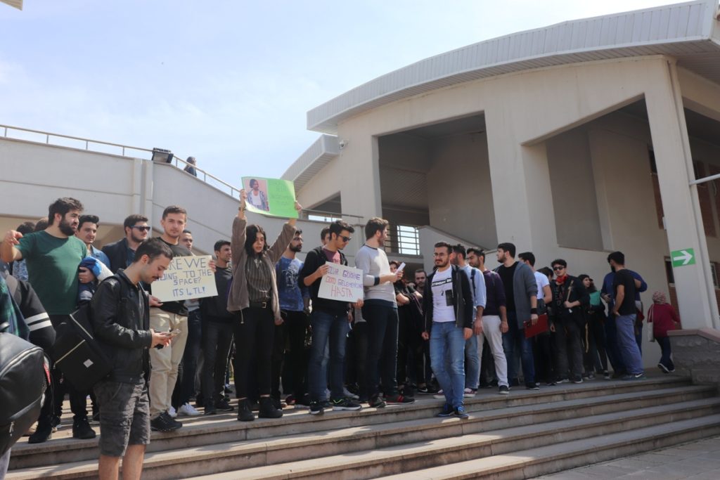 ODTÜ Kuzey Kıbrıs Kampisi öğrencileri servis sorununa dikkat çekmek için bugün üniversite kampüsü içerisinde bir eylem gerçekleştirdi.