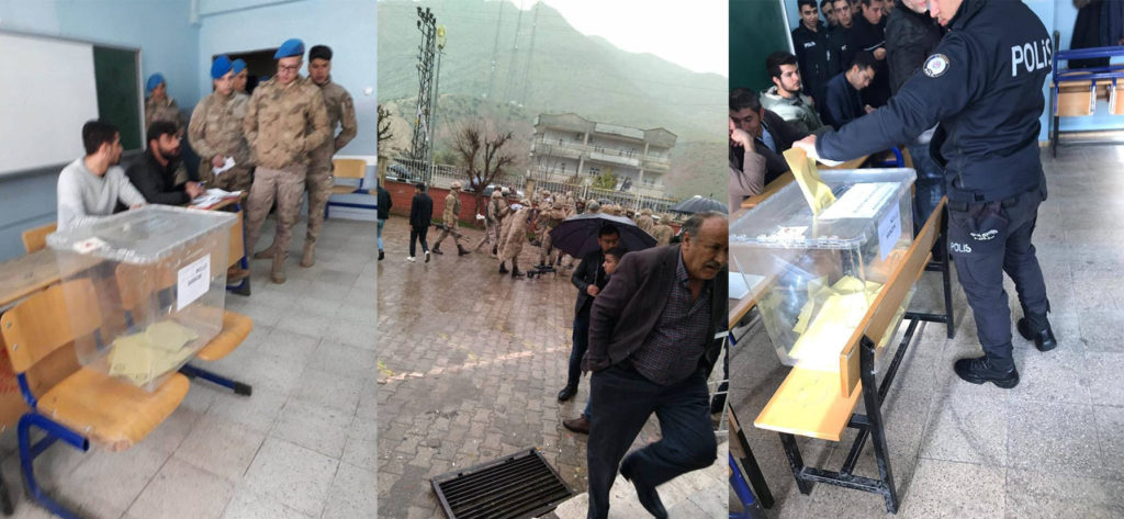 * Şırnak Beytülşebap’ta resmi görevli olmayan askerler üniformalı olarak oy kullanmak istedi. Bunun üzerine askerler üniformalarını çıkararak oy kullandı.