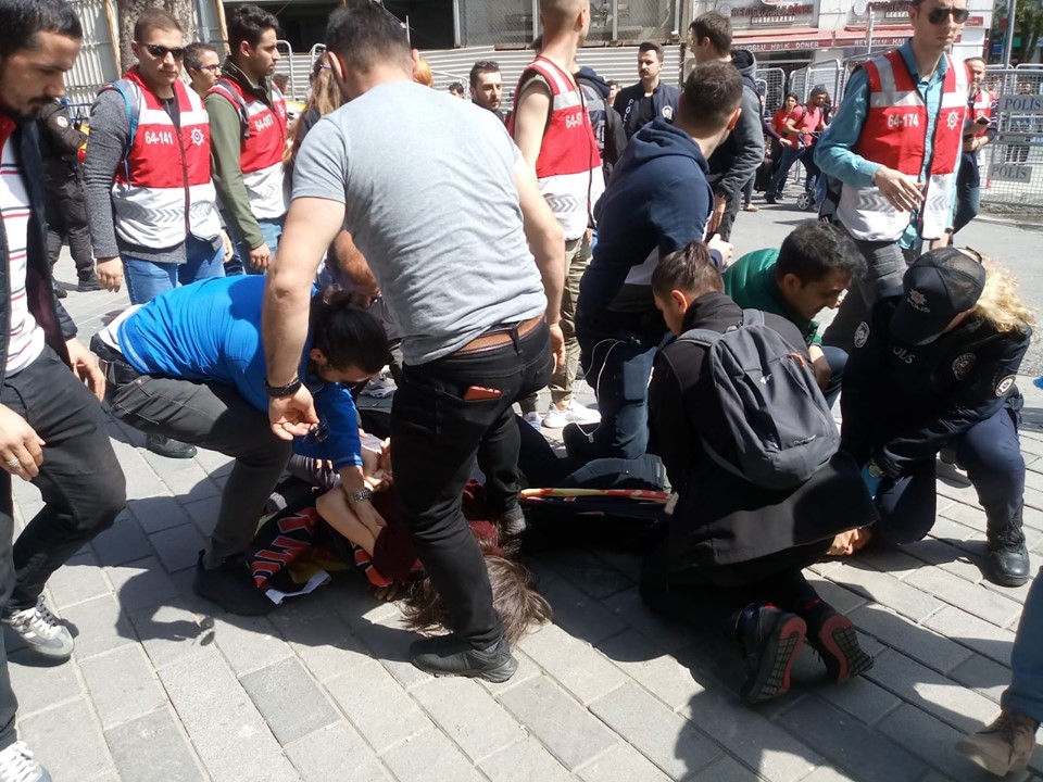 Taksim’e yürümek isteyen HKP’lilere müdahale eden polis, çok sayıda kişiyi darp ederek gözaltına aldı. 1 Mayıs Emek ve Dayanışma Günü’nü Taksim’de kutlamak için Beşiktaş Barbaros Bulvarı üzerinde bir araya gelen Halkın Kurtuluş Partisi (HKP) üyelerine polis müdahale etti. Bulvardan sloganlar eşliğinde Taksim’e yürüyen grubun önünü kesen polis, HKP MYK Üyesi ve İzmir İl Başkanı Avukat Tacettin Çolak, HKP MYK Üyesi ve Bursa İl Başkanı Avukat Halil Ağırgöl’ün de aralarında bulunduğu çok sayıda kişiyi darp ederek gözaltına aldı.