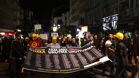Türkiye’de 13 Mayıs 2014’de Soma madenlerinde iş cinayeti ile katledilen 301 maden işçisi 3. Havalimanı İşçileriyle Dayanışma Platformu’nun çağrısıyla dün akşam Kadıköy sokaklarında yapılan yürüyüşle anıldı.