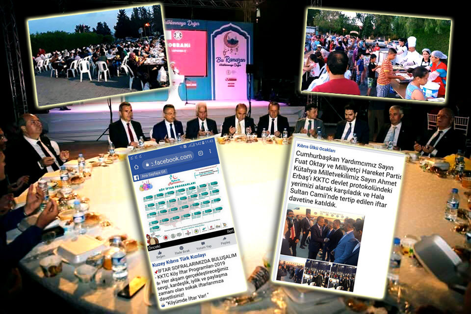 Sömürgeci TC devletinin Sömürge Valisi, Kızılay ve Vakıflar idaresi, SSTB, Hala Sultan Camisi ve Külliyesi’ndeki iftar yemeğine TC Cumhurbaşkanı Yardımcısı Fuat Oktay gelirken, Girne’de Barış Parkı’nda KKTC Milli İradeye Saygı Platformu isimli paramiliter gerici örgüt de İftar yemeği düzenlemeye devam ediyor!