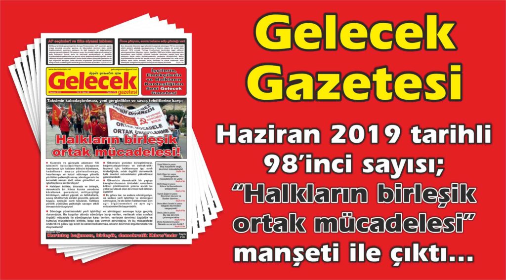 Kıbrıs’ın tek Marksist-Leninist yayın organı olan Gelecek Gazetesi’nin Haziran 2019, 98’inci sayısı “Halkların birleşik ortak mücadelesi!” başlığı ile çıktı.