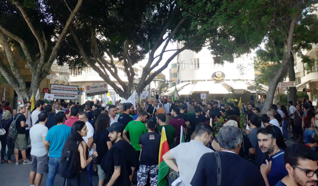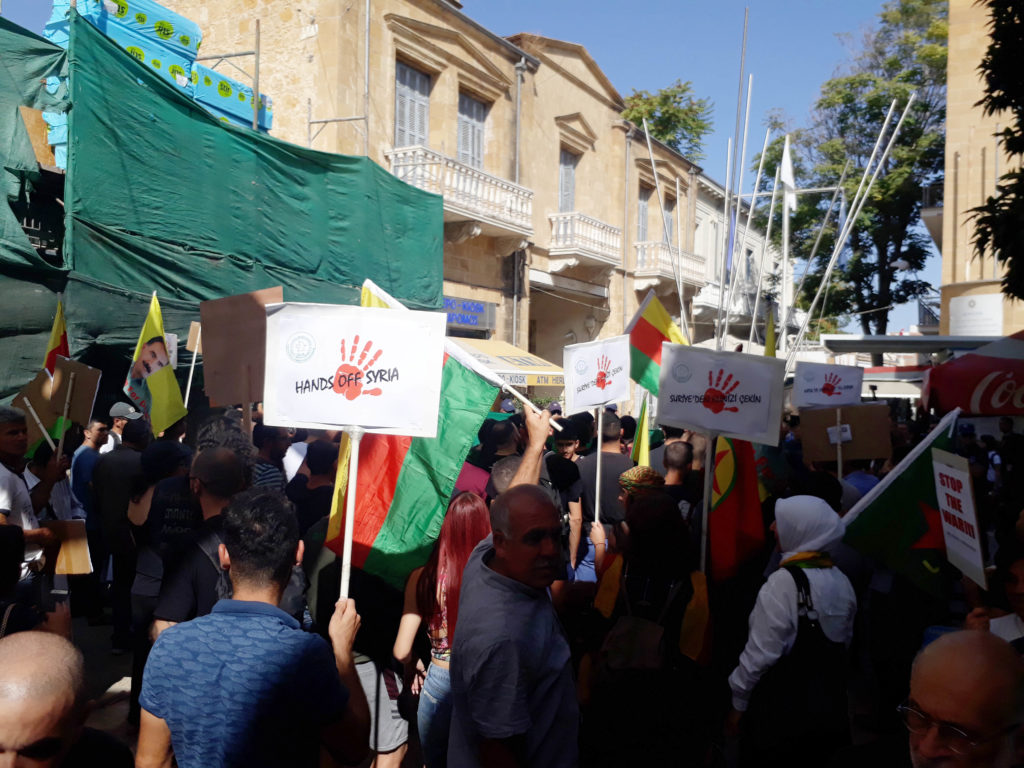 Σήμερα, με δράση που λαμβάνει χώρα νότια της Λευκωσίας, το τουρκικό κράτος διαμαρτυρήθηκε λόγω των κατοχικών του επιθέσεων εναντίον των συριακών κουρδικών περιοχών. Η Επαναστατική Κομμουνιστική Λίγκα υποστήριξε επίσης τη δράση και τα κατανεμημένα έγγραφα.