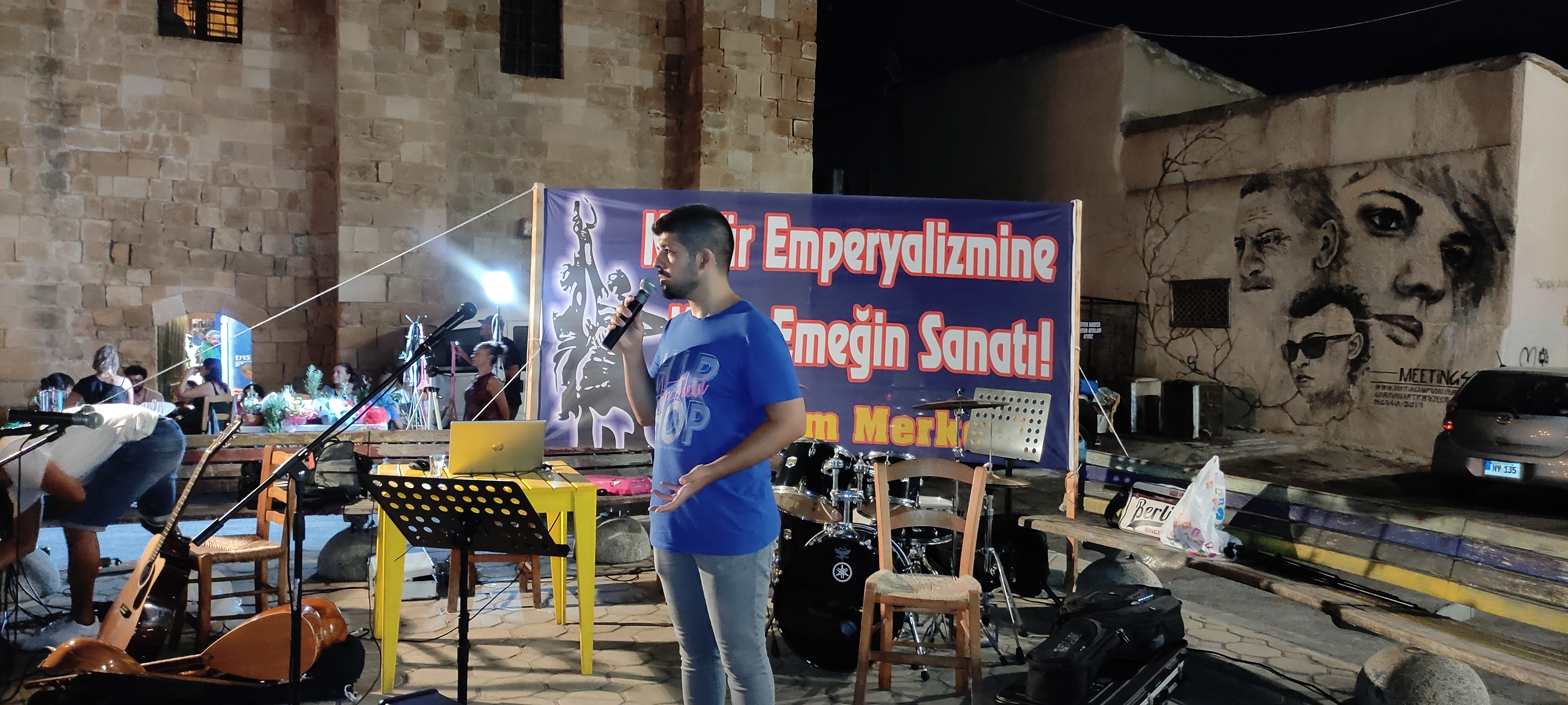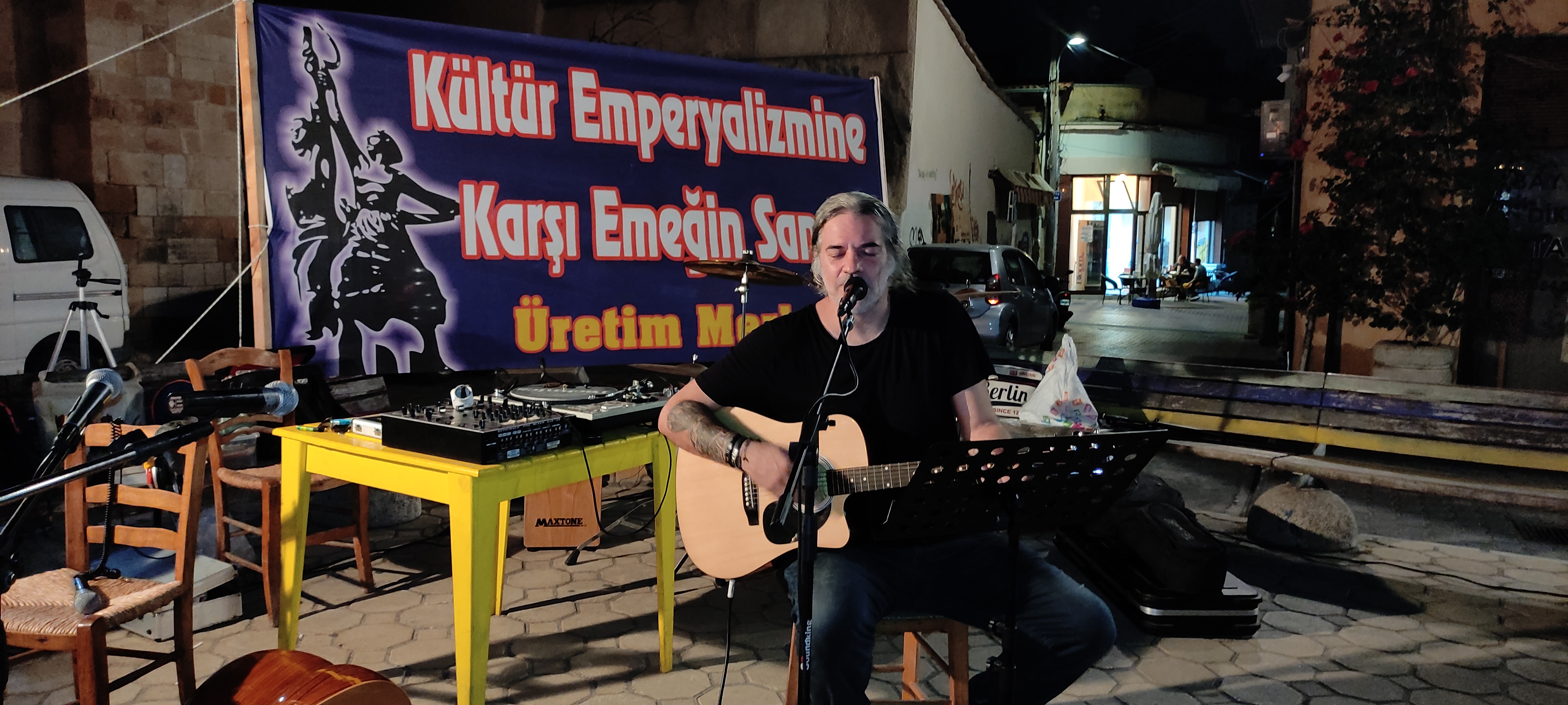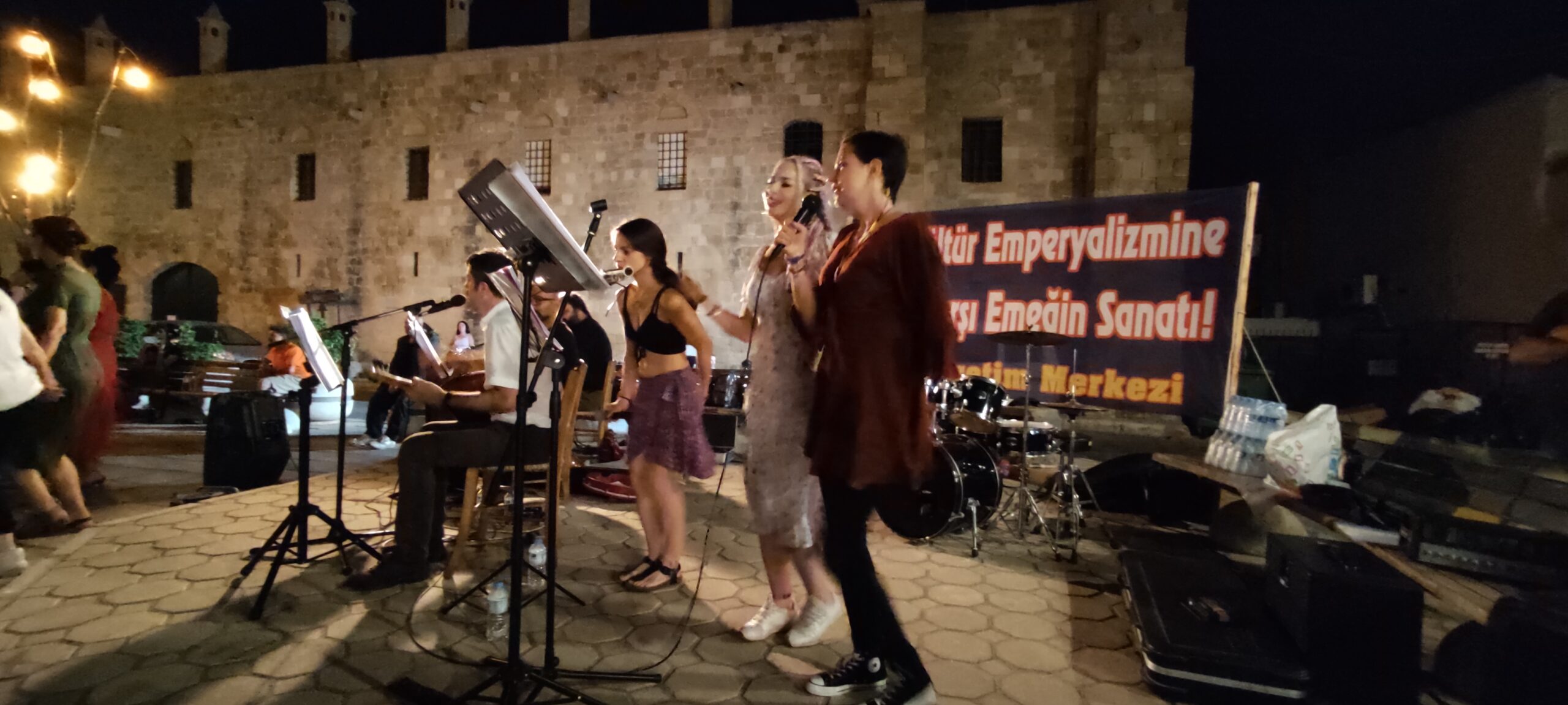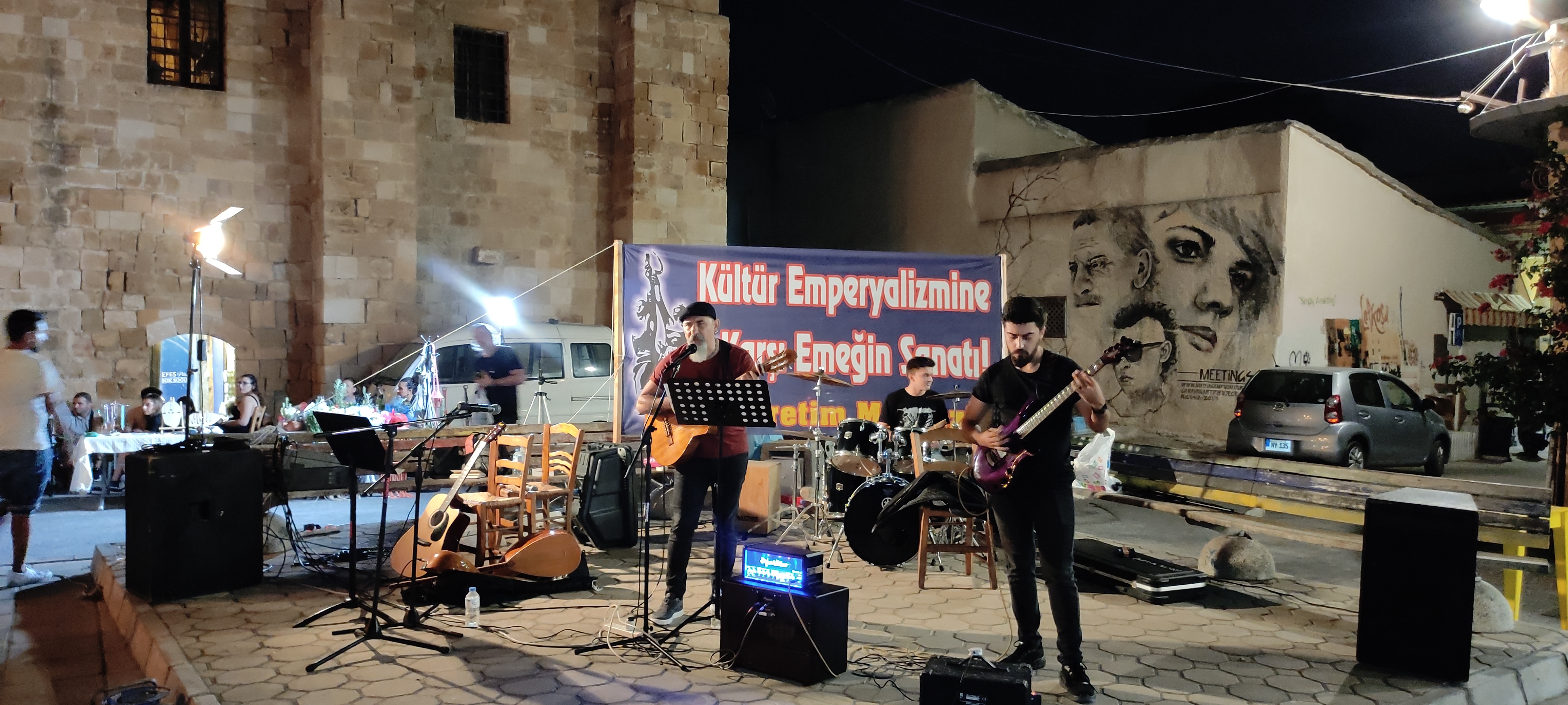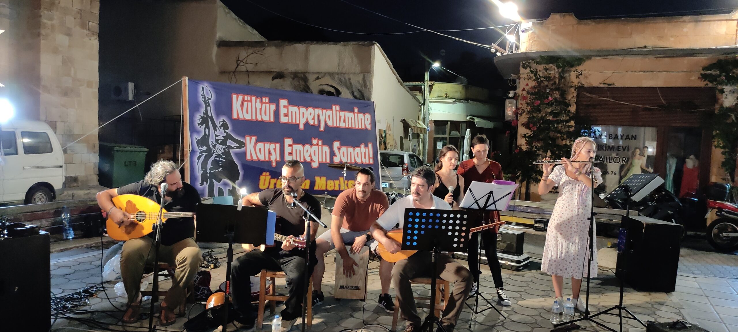 Arda Gündüz’ün umut ve enerji dolu şarkılarını Trak’ın sömürü, baskılar ve kadın cinayetlerine karşı isyana dönüşen şarkı sözleri izledi. Daha sonra sahneye çıkan Grup Ötekilen de yine umut ve mücadele içerikli şarkılarını, Kıbrıs ezgileri ile birleştirdiler. Ve son olarak sahneye Üretim Merkezi müzik ekibi olan Grup Üretim çıkarak, Türkçe, Yunanca, Ermenice, İspanyolca ezgileri ile emeği, direnişi, mücadeleyi ve zaferi içeren şarkıları, türküleri ve halayları ile yaklaşık bir buçuk saatlik bir performans sergiledi. Konserler boyunca zaman zaman Kıbrıs ezgileri ile dans eden dinleyiciler ise, gecenin sonuna doğru Grup Üretim’in türküleri ile coşkulu bir halaya tutuştular.
