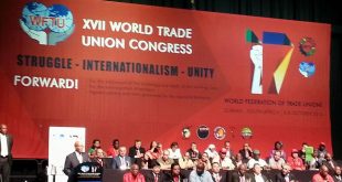 Dünya Sendikalar Federasyonu 17’inci Uluslararası Kongresi Güney Afrika’da gerçekleşiyor. Toplantıya, aralarında ülkemizin kuzeyinden ve güneyinden bir çok sendikanın da olduğu Dünya Sendikalar Federasyonu üyesi ülkelerden yakşalık 1500 kişi katılıyor. Kongre Güney Afrika Sendikaları Kongresi (COSATU – Congress of South African Trade Union)’un ev sahipliğinde “Mücadele – Enternasyonalizm – Birlik” sloganı …