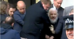 Wikileaks kurucusu Julian Assange’ın İngiliz polisi tarafından Ekvador büyükelçiliği binasında uluslararası hukuk çiğnenerek gözaltına alındığı öğrenildi. İngiliz polisi tarafından yapılan açıklamaya göre, Ekvador büyükelçiliğinde gözaltına alınan Assange’ın Londra merkeze götürülerek mahkemeye çıkarılana kadar bir süre gözaltında tutulacağı belirtildi. Yapılan açıklamada, “47 yaşındaki Julian Assange, Metropolitan Polis Servisi (MPS) yetkililerince Ekvador …